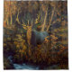 A big bull elk sporting large trophy antlers during the autumn rut. An elk hunter's dream! Fall colours on the surrounding forest trees create the perfect natural wilderness setting for this favourite North American big game animal. Realistic artwork created from an original oil painting by wildlife and equine artist Crista S. Forest.