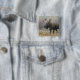 Bull moose in snowstorm with aspen trees 2 inch square button