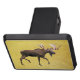An image of a bull moose superimposed on a brain-tanned leather background.