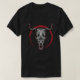 A striking black-and-white T-shirt design featuring a bull's skull with prominent, sharp horns. The skull is centrally positioned and encircled by a bold red outline, adding dynamic contrast. Detailed line work captures the intricate structure of the skull and horns. The transparent background allows versatile use, making this design perfect for branding, logos, thematic apparel, and bold graphic fashion.