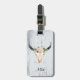 This luggage tag has a charming, rustic look. The background is in a white wood texture. The bull skull and pink flowers are watercolors. Personalize with your name.