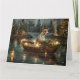 Set sail into the magic of the holiday season with this beautifully detailed illustration, showcasing a proud dog sitting in a festively decorated boat, gliding across a serene Christmas lake. The twinkling lights from nearby pine trees reflect off the water, casting a warm, festive glow that enhances the cozy ambiance. Ornaments dangle from the boat's sides, while glowing lanterns light the way, creating a scene that captures the true essence of Christmas warmth and joy. This nostalgic artwork brings a touch of holiday magic to any space, perfect for those who cherish the spirit of the season.