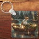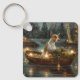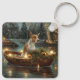 Set sail into the magic of the holiday season with this beautifully detailed illustration, showcasing a proud dog sitting in a festively decorated boat, gliding across a serene Christmas lake. The twinkling lights from nearby pine trees reflect off the water, casting a warm, festive glow that enhances the cozy ambiance. Ornaments dangle from the boat's sides, while glowing lanterns light the way, creating a scene that captures the true essence of Christmas warmth and joy. This nostalgic artwork brings a touch of holiday magic to any space, perfect for those who cherish the spirit of the season.