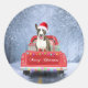 Bull Terrier Dog in Snow sitting in Christmas Classic Round Sticker