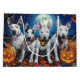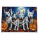 Unleash the spooky spirit with this eerie Halloween design featuring a pack of dogs under a dark, moonlit sky, surrounded by flying bats and glowing pumpkins. Perfect for those who love a touch of frightful fun with their furry friends!