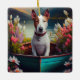 Bull Terrier on a Paddle: A Scenic Adventure Ceramic Ornament