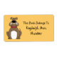 This bookplate label features a bulldog holding a bone in it's mouth on an orange background with customizable text. Click on the Customize It button to change the background colour.