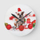 Bulldog Christmas Gift Box Ornaments Red Santa Hat Round Clock