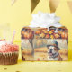 A watercolor-style painting of a cheerful dog sitting amidst a pile of vibrant fall leaves, surrounded by tiny pumpkins and scattered acorns. The dog wears a little pilgrim hat and beams with joy, capturing the spirit of Thanksgiving. In the background, soft harvest fields and golden-hued trees create a peaceful countryside ambiance. Gentle textures and warm, muted autumn tones give the scene a cozy, nostalgic feel perfect for celebrating the beauty of the season.