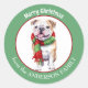 Bulldog in Red and Green Christmas Scarf Classic Round Sticker