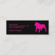 Here's a fun and easy way to advertise any pet service. Whether its a mobile groomer, pet sitting, a rescue group, a breeder, doggy day care, a dog trainer or a dog-walking service, this polka dotted bright pink skinny business card features a bulldog silhouette on the right side of the card looking at your business information. The dog is repeated on the reverse in an opposite colour combination. Available in alternate colours with matching products.