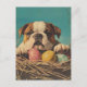 Celebrate Easter with the charming and iconic Bulldog in this vintage-style postcard. Featuring the lovable dog surrounded by colourful Easter eggs, blooming spring flowers, and festive seasonal accents, this design is perfect for Bulldog enthusiasts, collectors, and fans of nostalgic holiday art. A delightful keepsake to share Easter joy.
