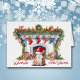 The front of this Christmas greeting card has an image of an adorable brown and white bulldog wearing a red and white Santa hat. The dog sits in front of a decorated fireplace, expectantly waiting for Santa Claus. The red text at the bottom says "Waiting for Santa". The text is customizable, as is all the inside text, so you may make it say whatever you'd like. Cute! See more Bulldog images, along with dozens of other dog breed products, at Dog Village.