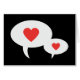 Deux coeurs rouges vifs dans des bulles de discours. Texte personnalisable : "Penser à vous..." Modifiez le style et la taille de police pour créer votre propre message personnalisé. Customisez la couleur arrière - plan pour créer votre propre message d'amour pour la Saint Valentin.