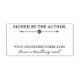 Signed by the author self-inking stamp for a thriller or crime author you can stamp your published books with before signing them to ensure your reader knows you signed it by hand. The stamp features simple elegant text, a divider inspired by bullets and shooting, and your author's website on the bottom. Have a thrilling read! in a signature script, as a message to your reader, with room left between the text for you to sign by hand!