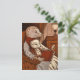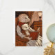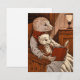 The image shows a warm scene of two ferrets, one adult and one young, sitting in a wooden armchair. The adult ferret, wearing a red and white scarf, holds a large book with a red binding, while the youngest, wearing glasses, is comfortably seated on his lap. The room is dimly lit by a lamp placed on a side table, throwing a warm glow on the stage.