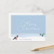 A Merry Christmas postcard with a bullfinch in the foreground and fir trees in a snowy landscape ; texts are customizable. Holly illustrates the back of the card. Perfect to send to your friends, family or even to your customers for Xmas or New Year!