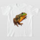 A big colourful green, yellow and brown bullfrog with attitude, photo artwork of a large frog, striped mouth pattern and golden brown eyes. You can use the customize feature to add text, or resize or move the image if desired. Frogs are considered fortunate in many cultures. The spiritual meaning of frogs is one of good luck, wealth and prosperity, balance, health and healing, springtime, music, voice and vocal talents, moon magic, romantic love, friends, community and celebration. Frogs and other amphibians are associated with elemental magic because they live in both Earth and Water environments, and also with transformation magic as they change from swimming larvae, such as tadpoles, to adults that are mobile on land. Even frogs that live in drier environments, or spend all their lives in trees, need water to spawn. In folklore and ancient medicine, the frog relates to organic health in part due to its highly sensitive skin, which was often used by shamans in medicine rites. Almost all frogs are found in freshwater wetland habitats, with the exception of a couple of species that have adapted to brackish water. Hoppy blessings from Happy Wishing Well dot com.