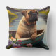 Bullmastiff on a Paddle: A Scenic Adventure Throw Pillow