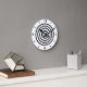 Round Wall Clock wall art decor and decorative home furnishing decor accessory printed with Bulls Eye Circle Rings Black And White Time Piece Modern Contemporary Indie Abstract Art on a changeable customizable background colour of your choice original artwork design illustration and select products collection by TheFabricSeal print on demand shop at Zazzle.com #ZazzleMade https://www.zazzle.com/store/thefabricseal TheFabricSeal©️Original.