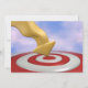 A shiny gold arrow strikes the centre of a colourful bullseye.