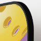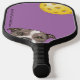 Nine hand drawn PitBull type dogs on one side of the PickleBall Paddle and on the other a close-up dogs stares down an incoming PickleBall highlighted by a solid colourful background. The 'front' design is on a transparent background and can be changed. Add a name or other text on this side to personalize. Other dogs on paddles can be found in eula_art. Message eula_art if you are interested in a custom drawing.