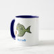 Angry fish bullying a little one cartoon illustration. Custom text on both sides.