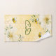 Jaune, arrière - plan blanc avec un motif de nid d'abeille. Décoré de fleurs tropicales de couleur crème jaune clair, d'hibiscus et d'abeilles jolies. Ajoutez vos propres initiales de monogramme. Lettres vertes.