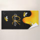 Un arrière - plan noir élégant et de jolies bourdons souriants. Décoré avec du miel doré doux qui dégouline. Personnalisez et ajoutez votre nom et vos initiales monographiques, en lettres dorées et blanches. Le nom est écrit avec un script de style écrit à la main. Parfait pour votre maison d'été !