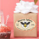 Use this label as a template for creating honey jar labels from different flower blossoms, with customized text to add a name of the apiary or beekeeper, each floral variety, contact information and net weight. Bumble bee graphic stands out against a white background in the centre, surrounded by a geometric pattern. Stickers will fit large, quart and half gallon size mason jars, and large glass containers. © dotpattern