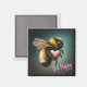Un bel aimant représentant une abeille bourdonnante, tenant un coeur d'amour avec les mots 'Bee Happy' imprimés sur l'image.