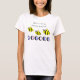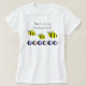 Yellow smiling bumble bees with black stripes and fluttering wings. With the saying, There's a lot of Buzzing Going On. BABIES is written inside black geometric circles with Pink and Blue letters. Original Artwork and Design by TamiraZDesigns.