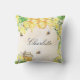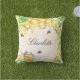 Bumble bees honey yellow floral name script outdoor pillow