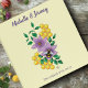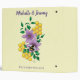 A cute bumblebee gently sits among two delicate lavender flowers and fresh green leaves, all set against a soft creamy yellow backdrop. Perfect for a wedding that celebrates love and the beauty of the outdoors.
