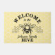 This simplistic bumblebee graphic on pale honey yellow honeycomb background gives this farmhouse style doormat a little sweet country charm! It can be personalized to create a unique and memorable housewarming gift. This design includes copyright material of Cricut.