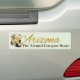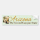 The lovely, creamy white blossom of the giant Saguaro Cactus was designated the state flower of Arizona in 1931. The amazing, giant Saguaro Cactus is indigenous to Arizona. It grows to a height of forty to fifty feet and lives to an age of 150 to 200 years. The age of a Saguaro Cactus is determined by its height. Saguaros are very slow-growing and can take up to 75 years to develop a single side shoot. In the first EIGHT years of a Saguaro's life, it will only grow about one to one and a half inches. As they are also very slow at propagating, the Saguaro Cactus is a candidate for the endangered species list. In fact, harming a Saguaro Cactus in any manner is illegal in Arizona. The beautiful cactus flowers don't appear on this astonishing plant until its at least 35 years old. Also, amazingly enough, an adult Saguaro may weigh up to SIX TONS and is primarily made up of water -- rather unexpected in the desert. Most other blooming plants are named after the flower they support, in the case of cacti, however, the flower is named after the cactus on which it grows. Since they aren't inclusive of "flower arrangements", the symbolism of the cactus flower is usually also that of the cactus and includes, power, loneliness, endurance, protection and maternal warmth. But this design is not just a tribute to this spectacular plant or its bloom, it also pays homage to our 48th state -- the last of the "lower 48" or 48 contiguous United States. Arizona is known, of course, for its desert climate -- particularly in the south. Northern Arizona, on the other hand, has large forests of evergreens. There are also mountains and deep canyons in the topography of this fabulous state. As diverse as the state's terrain is, the people of Arizona are even moreso. About one-quarter of the state is made of of Indian reservations that serve as the home of 27 Native American tribes, including the Navajo Nation, the large in both the state and the country, with more than 325,000 citizens. This delightful design, celebrating the 48th addition to the United States, offers an outline of the state of Arizona, filled with their state flower, the remarkable Saguaro Cactus Flower. This is layered with the a warm, desert orange "Arizona" and anchored with a deep brown "The Grand Canyon State". This lovely bumper sticker is appropriate for sale in Arizonan souvenir shops and also a wonderful reminder of your memorable Arizonan vacation.