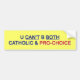 Bumper Sticker. U Can't B Both Catholic & Pro-Choice. Background can be changed to any colour!