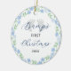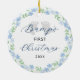 This cute "Bump's First Christmas" ornament is an adorable way to celebrate your coming baby. Features blue watercolor floral wreath, baby footprints, and modern calligraphy. Easily personalize with the year. Design is the same on front and back of ornament. Makes a great Christmas present for expecting parents!