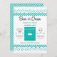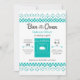 Cette invitation moderne est idéale pour un Baby shower sur le thème du "Bun in the Oven". Il dispose d'un poêle au centre et comprend un arrière - plan en plaid et une bordure en dentelle en haut et en bas. Ce design élégant a une allure rétro. La couleur turquoise, blanche et grise en fait l'endroit idéal pour un baby shower neutre pour les hommes et les femmes.