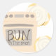This fun hand lettered and hand sketched design of an oven and cinnamon buns in soft vintage colours is super sweet.