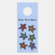This paper door hanger is light blue with a bunch of abstract black turtles with colourful markings in various colours on their shells on the front and back. Customize your text on the front and back with the template.