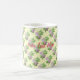The original painting of this pretty bunch of pink fuchsias is a water-colour picture. The soft pink flowers are hanging amongst a few soft green leaves and are outlined in a sketchy style using a black fine nib pen. The pink fuchsia flowers look great against the pink background on this quality customizable floral mug.