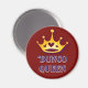 Proudly display on your refrigerator or other magnetic surface that you are the Bunco Queen. Modern and stylish red design with a watercolor yellow crown. Fun for all Bunco or Bunko players.