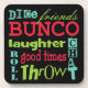 Fun multicolor subway art graphic bunco design. Background colour can be changed. Featured are the words friends, bunco, dice, throw, toss, chat, laughter and good times. Makes a great and clever prize or gift. Great for your next Bunco event.