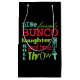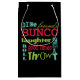 Surprise your Bunco friends with this fun Bunco gift bag. Great for Bunco prizes, Bunco gift exchange, Bunco white elephant, Bunco birthday and more. Graphic Subway Art design features the word dice, friends, roll, laughter, chat, good times, throw and Bunco.