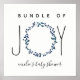 A baby shower poster featuring an illustration of a blue wreath incorporated into the phrase "bundle of joy". Personalize the name. Matching baby shower invitations and coordinating items are available at Jill's Paperie.