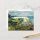 A fine art postcard with the realist watercolor painting, Flower Garden and Bungalow, Bermuda (1899), by Winslow Homer (1836-1910), an American Artist. A tropical landscape featuring vibrant red canna lily flowers and a captivating view of the ocean.