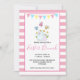 Une invitation au brunch de Pâques sur un motif rayé rose avec un cadre blanc superposé. Une banderole de brassage s'étire sur le dessus. Illustration d'une mère et d'un bébé lapin debout ensemble. Fraîches du printemps dans l'arrière - plan. Quelques papillons géants flottent au-dessus.