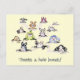 13 Bunny Rabbit Holes ont des lapins Couler vers le haut et les fesses sautant en disant Merci dans des caricatures drôles à visage mignon. Avant de la carte a imprimé à la main le texte qui dit "Merci un tas de trous". A l'intérieur est un agrandissement mais perdu en arrière - plan, magenta drôle lapin et texte (vous pouvez customiser) qui dit : "avec l'espoir!" Egalement 4 lignes rouges crayon et un coeur minuscule pour décorer la zone d'adresse de carte postale. Les lapins sont faits en aquarelle et stylo et encre en vert, bleu, marron, orange, rose, gris, noir et blanc. Ajoutez votre propre texte (comme un nom, ce serait bien si vous vous nommez Bonnie le lapin) pour créer un message personnalisé.