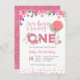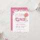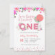 Bunny 1st Birthday Floral Invitation Pink glitter